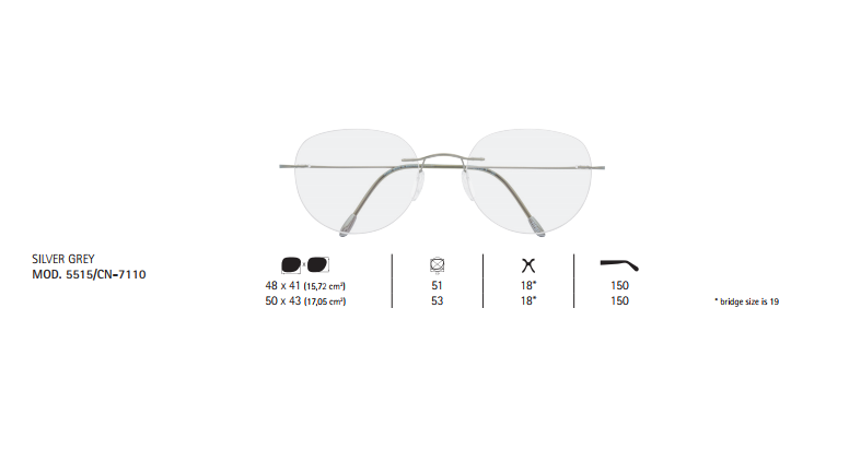 Важно: данный вариант оправы поставляется в виде конструктора 5515. Такой вариант позволяет произвольно комбинировать цвет оправы и форму линз. В результате Вы имеете возможность заказать максимально подходящие для Вас и почти неповторимые очки. Для того, чтобы Вы имели возможность подобрать оправу Silhouette по Вашему лицу, данная модель конструктора представлена в нескольких размерах - размер линзы/ ширина переносицы/ длина дужки (см. рисунок).